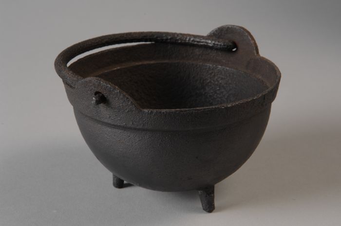 Zwarte gietijzeren miniatuur kookketel, model heksen...
