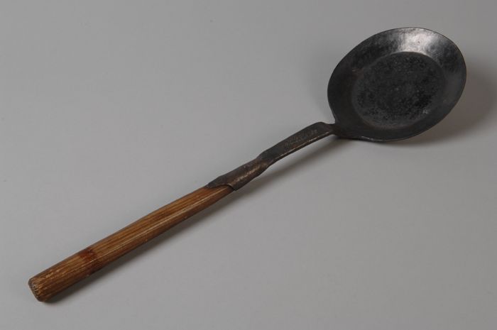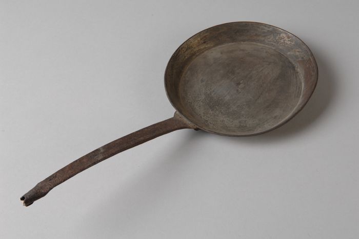 Kleine smeedijzeren koekenpan, met houten handvat