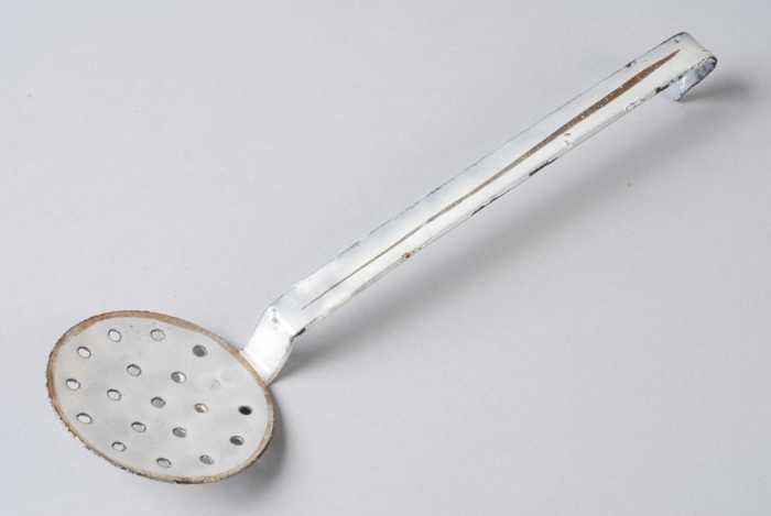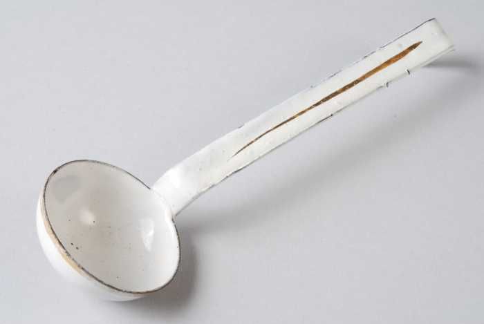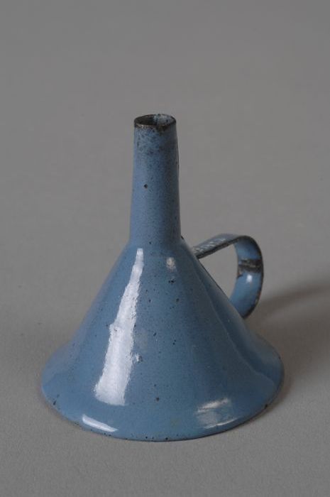 Lichtblauw geëmailleerde miniatuur trechter met oor