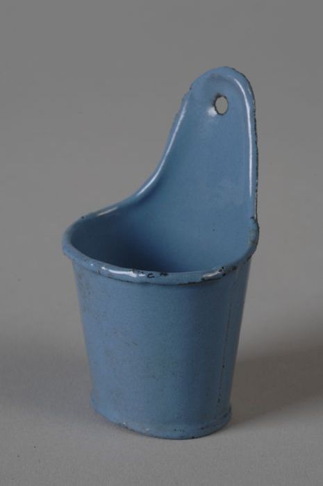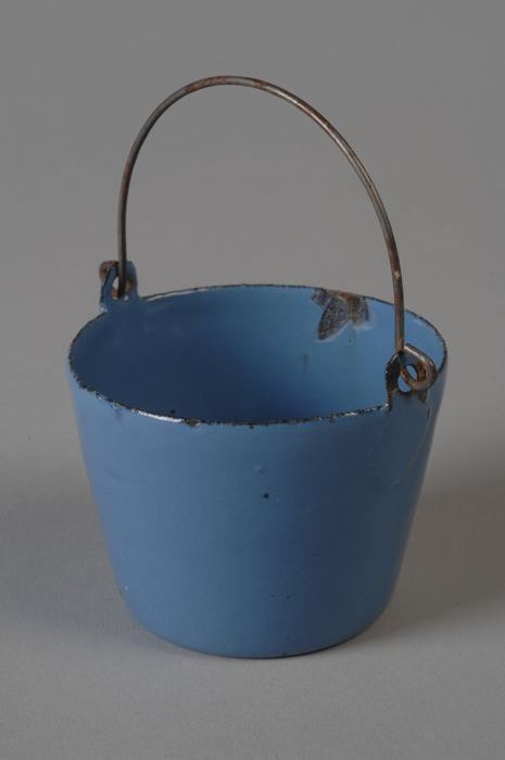 Lichtblauw geëmailleerde miniatuur emmer met hengsel