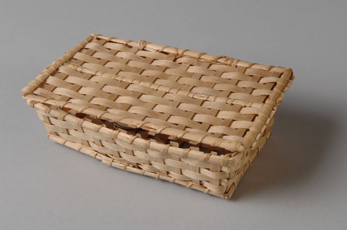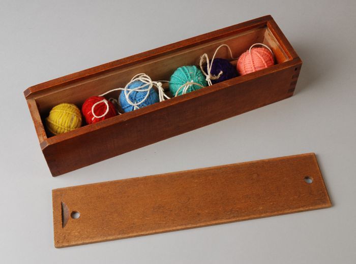 Langwerpige kist "1" met schuifdeksel, daarin zes ge...