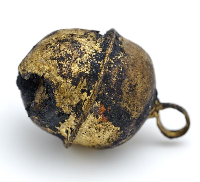 Messing bel van rammelaar, met oog