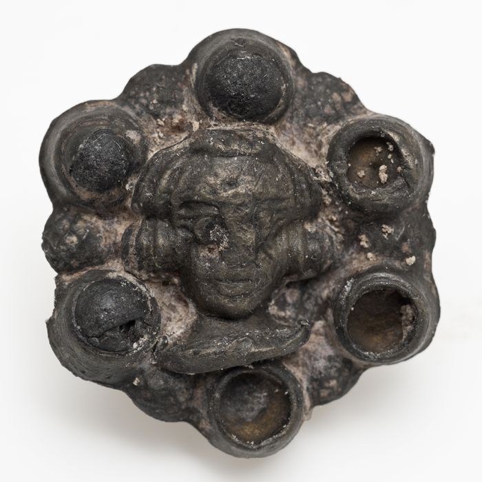 Rozetvormig beslag met gezicht in het midden