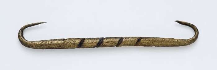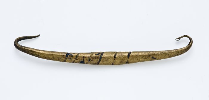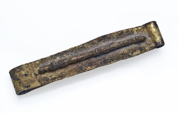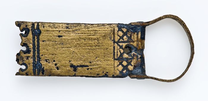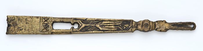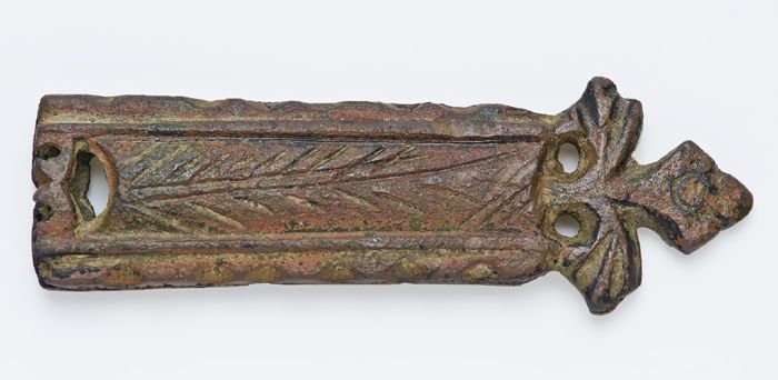 Mantelspeld of mantelsluiting, koperen strip met aan...