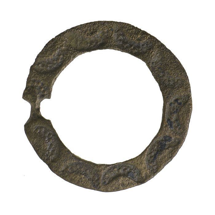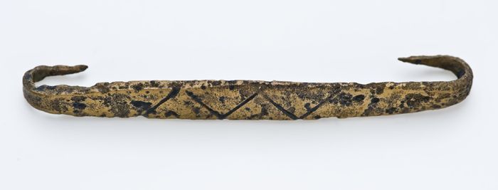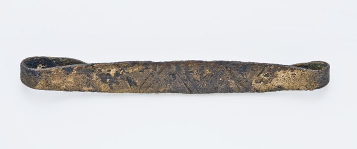 Koperen sierbeslag met lineaire versiering