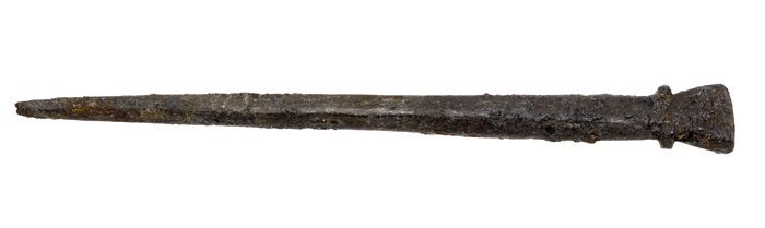 Koperen punt van messchede met lineaire versiering, ...