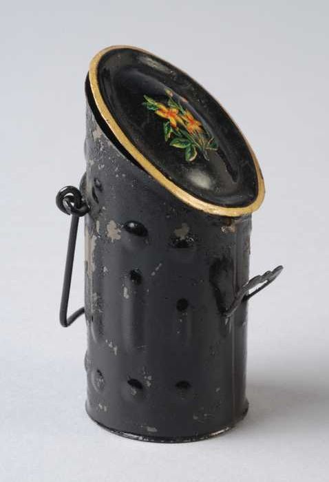 Lichtblauw geëmailleerde miniatuur lampetschaal met ...