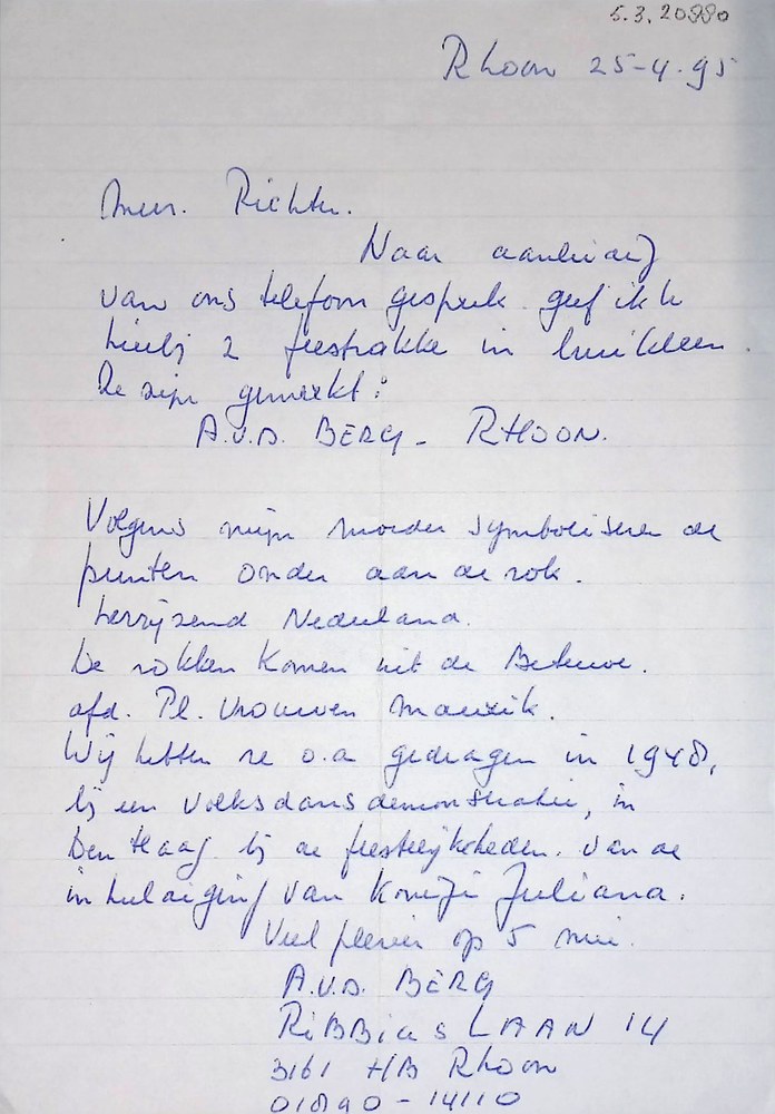 brief betreffende nationale feestrok