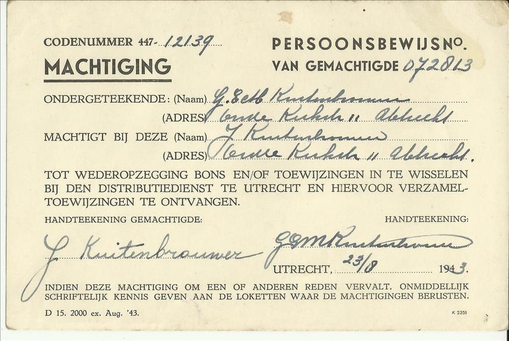 Machtiging, persoonsbewijs van gemachtigde codenumme...
