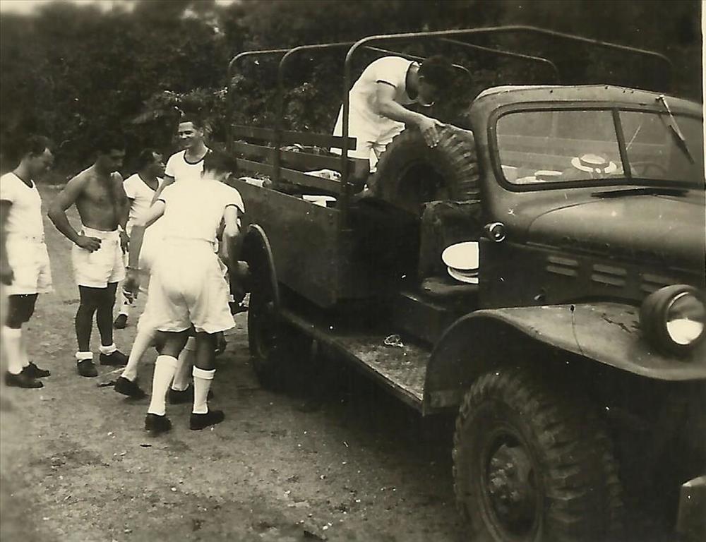 Nieuw-Guinea; KM-personeel, truck, lekke band