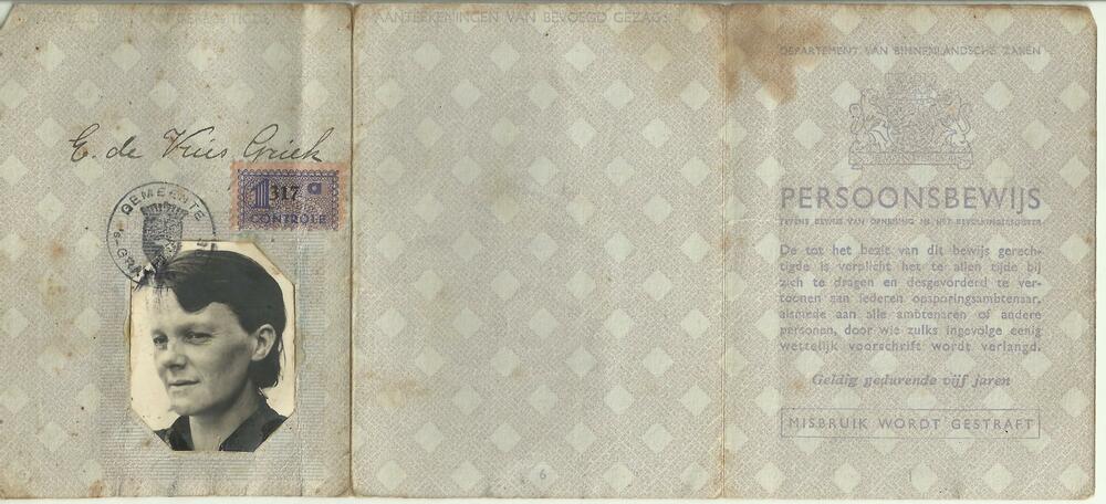 Persoonsbewijs op naam van Elisabeth Griek