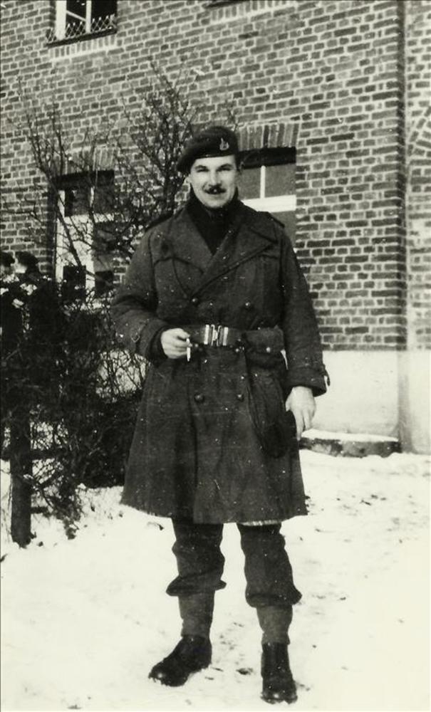 Britse militair van Reconnaissance Corps voor gebouw...