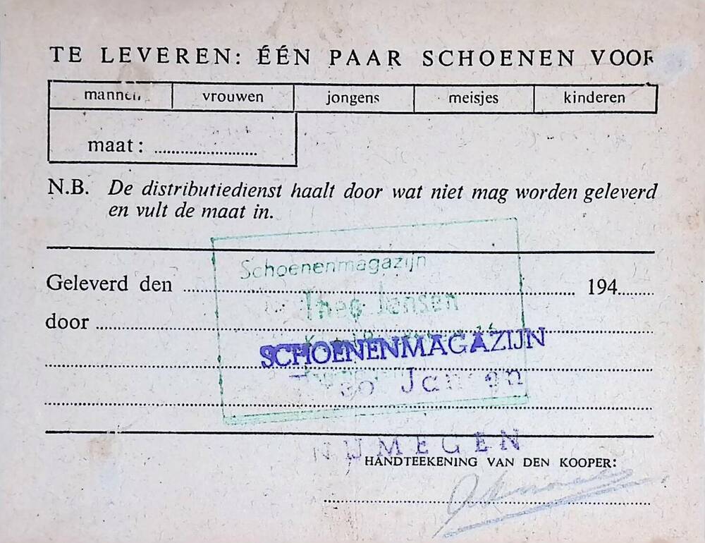 Bonkaart, voor een paar schoenen ( gewone schoenen)