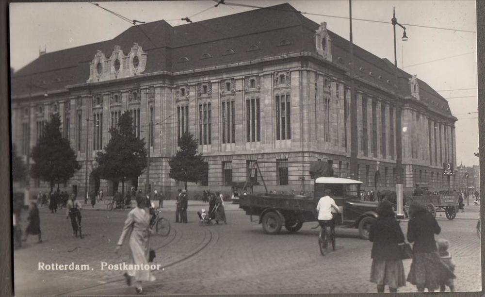 Foto (ansichtkaart) van het postkantoor van Rotterdam