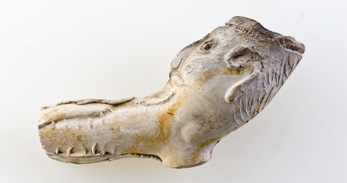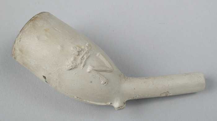 Kleipijp in reliëf versierd met leeuw en stadswapen ...