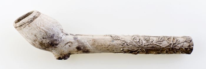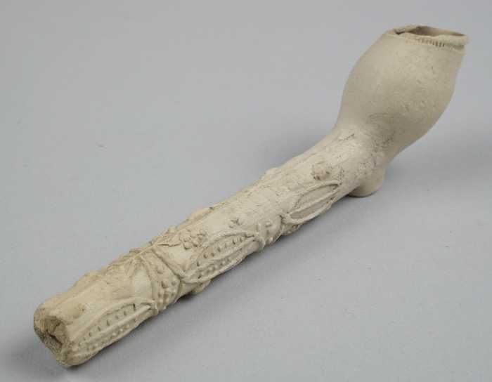 Kleipijp, ongemerkt, met florale decoratie in reliëf...