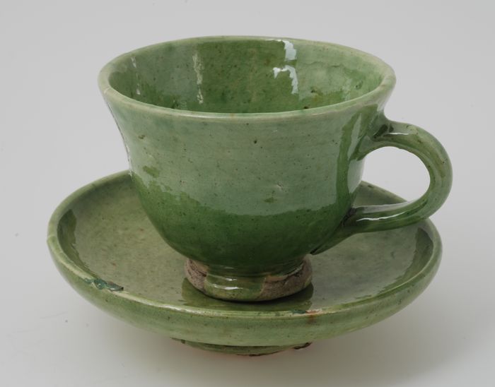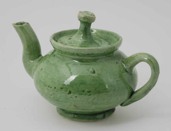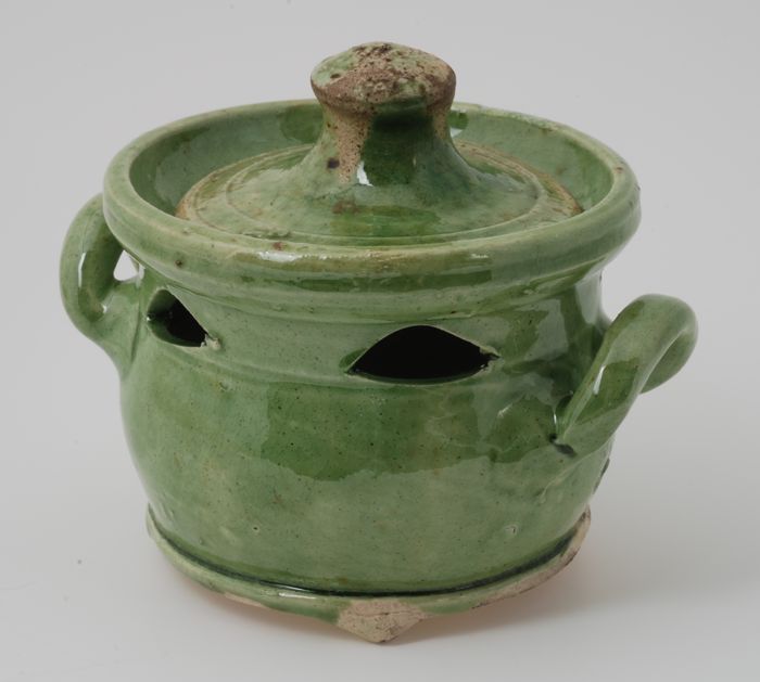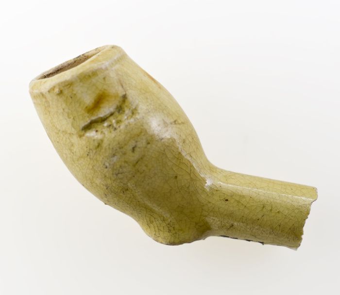Kleipijp, gemerkt met geel-groen glazuur