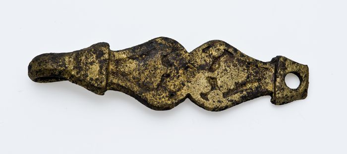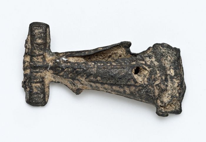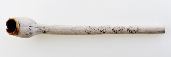 Kleipijp, ongemerkt, met in reliëf twee gestileerde ...
