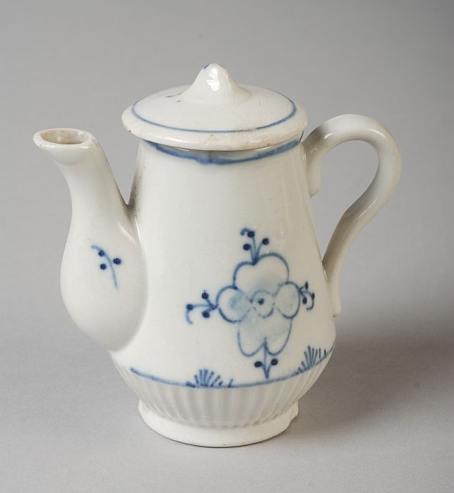 Witte miniatuur koffiepot van kinderservies, met bla...