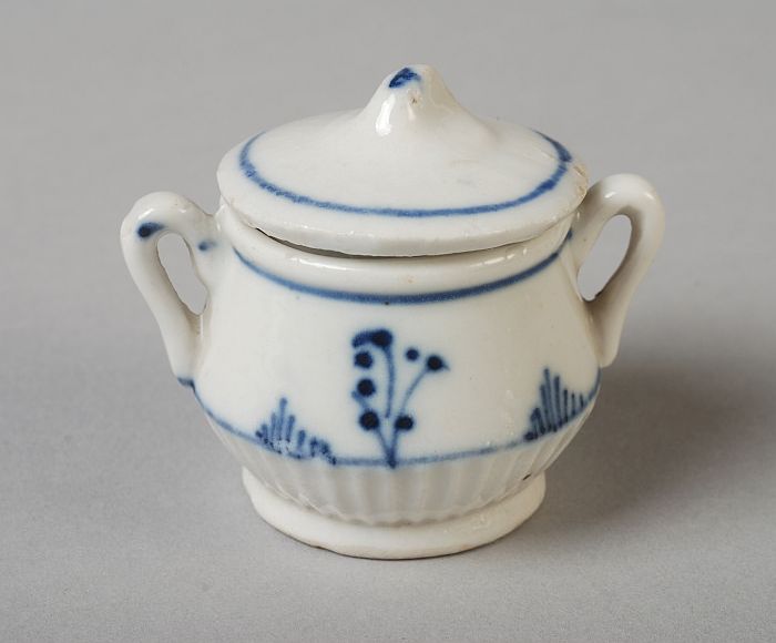 Witte miniatuur suikerpot van kinderservies, met bla...