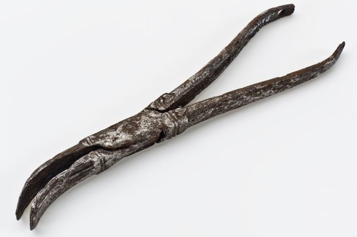 Scharnierende tang, ongelijke ogen en ovale bek, ver...