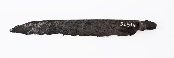 Gebogen lemmet met angel, van mes