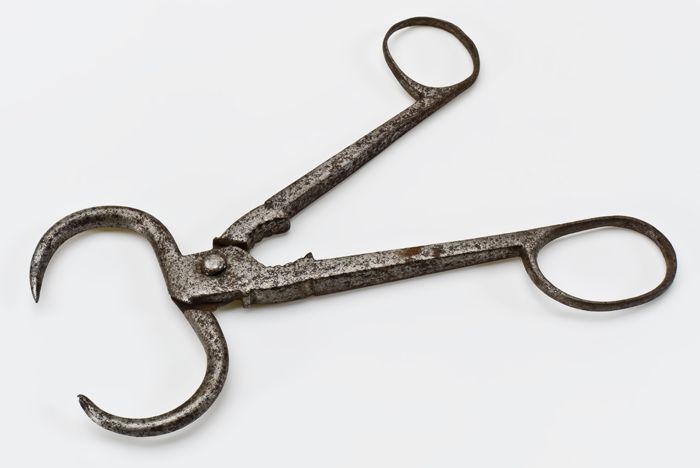 Knijpschaar met twee puntige messen en rond oog