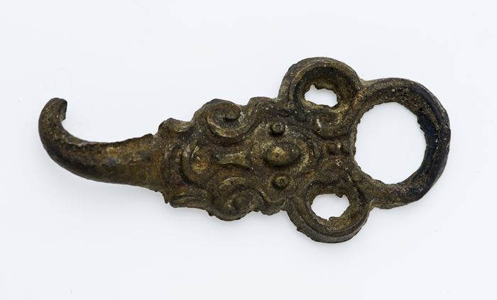 Kop van kleipijp met florale decoratie in reliëf op ...