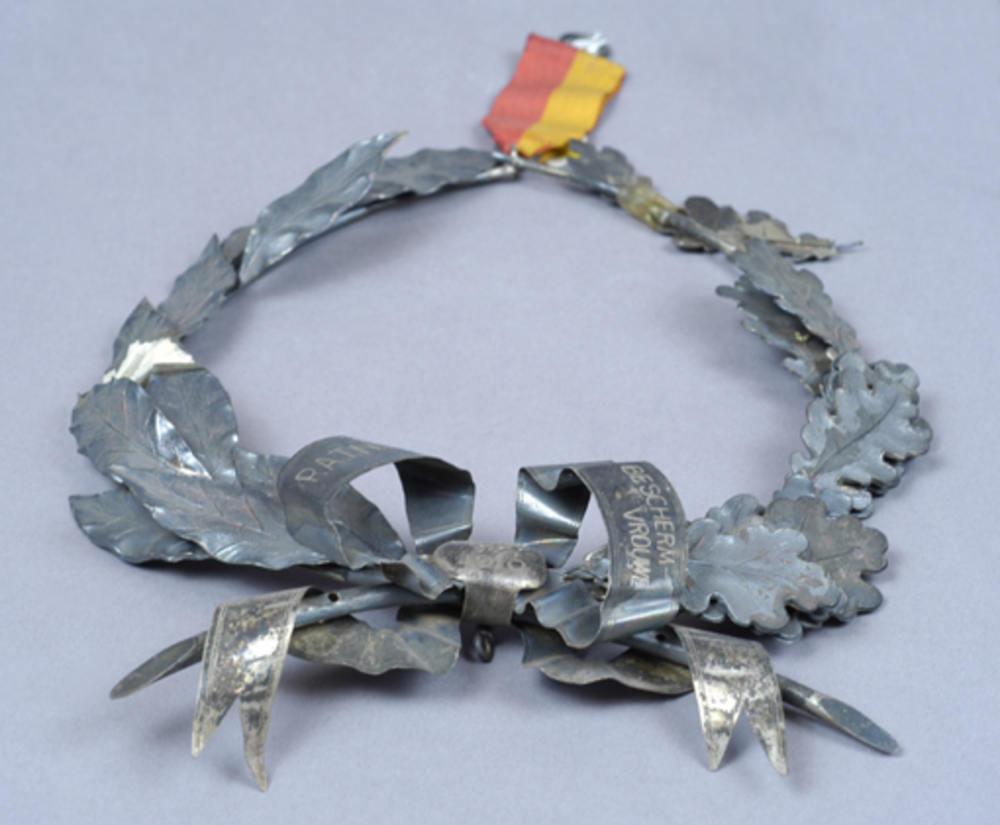 zilveren krans, onderdeel van vaandel apeldoorns man...