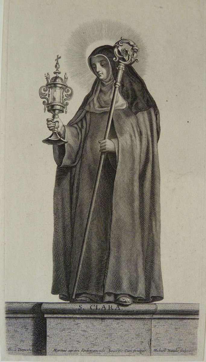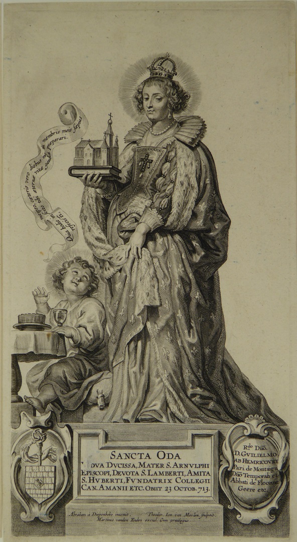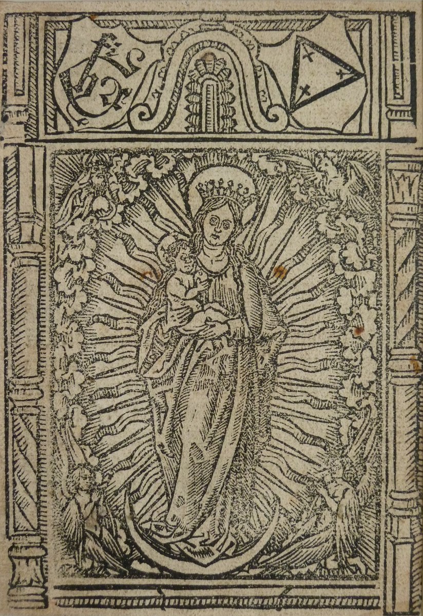 Moeder Gods in een stralenkrans waarboven schild met...