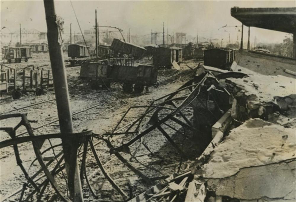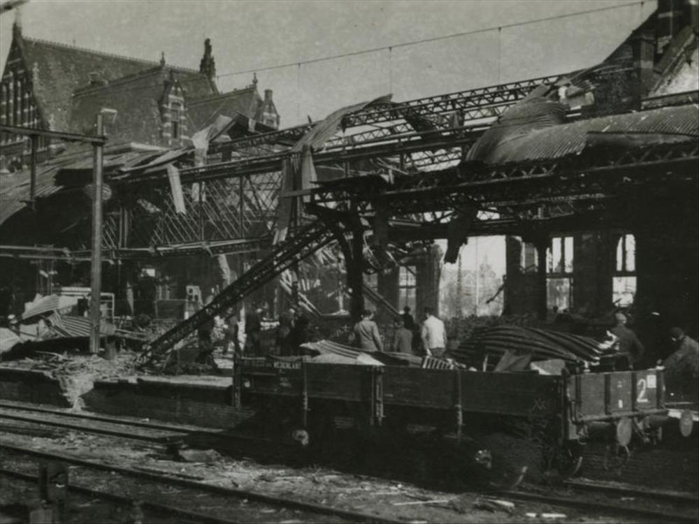 Nijmegen, 22 februari 1944; stationsgebouw en perron 1
