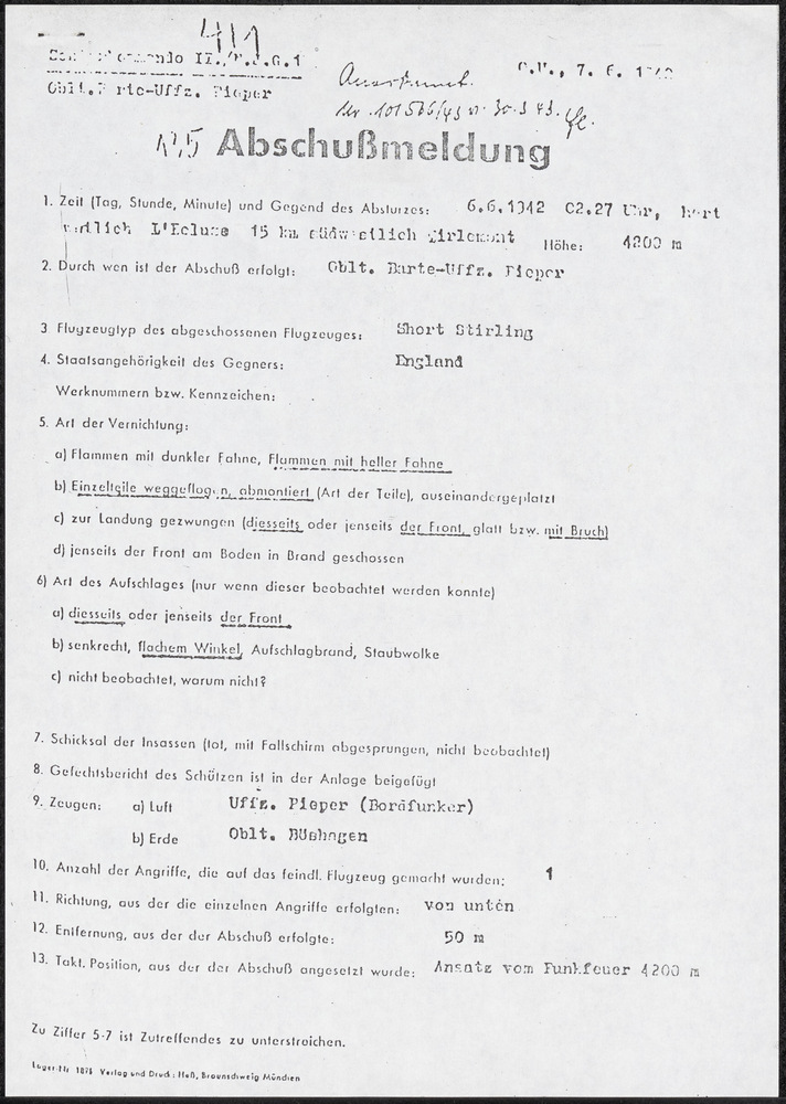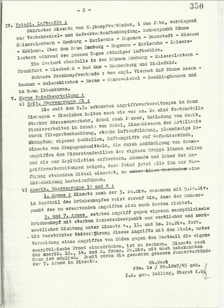 Bericht van de Oberbefehlshaber West / röm, 1 c nr 1...
