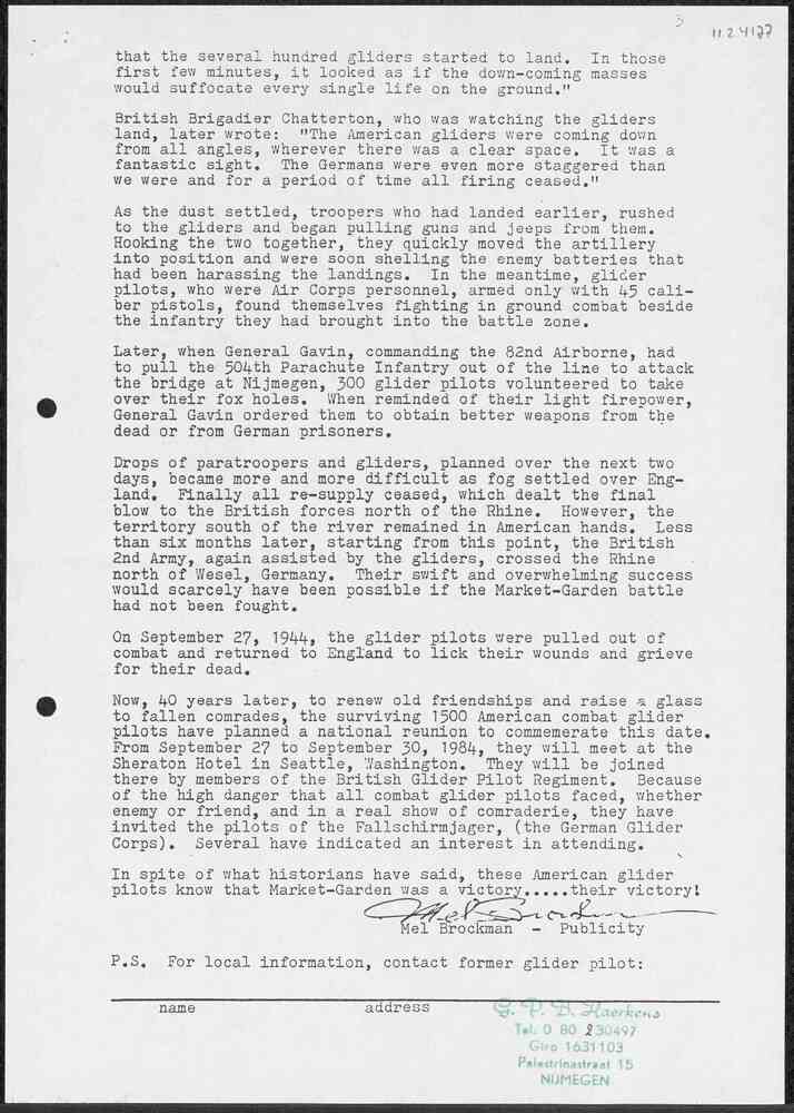 Brief aan Hubert van Ella dd 17-11-1944