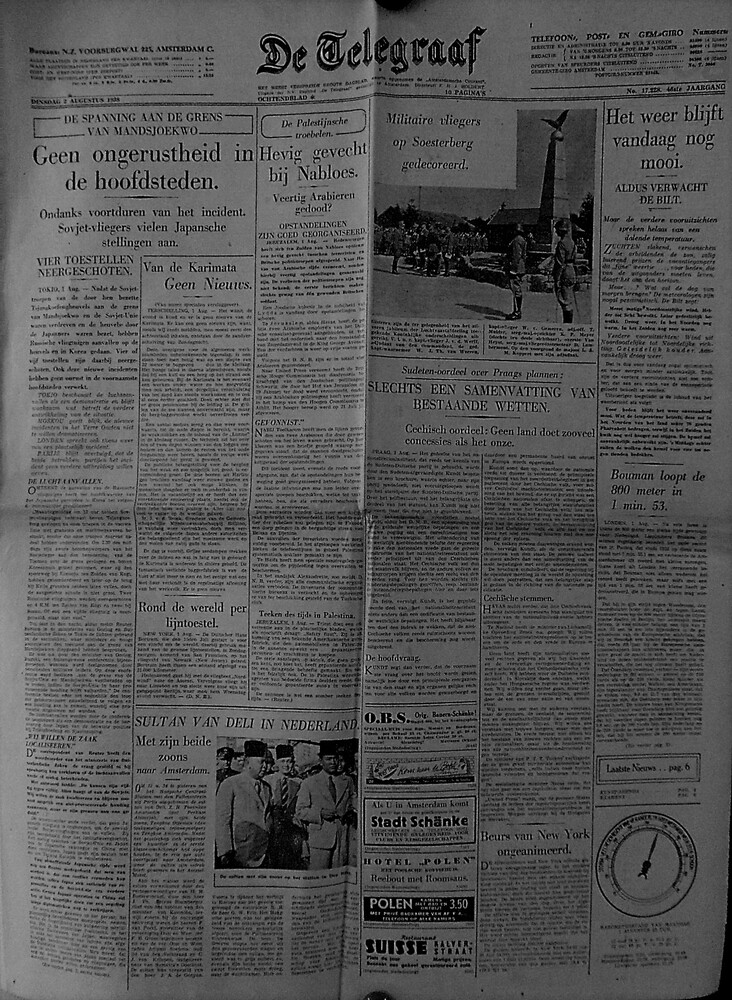 "De Telegraaf" van "Dinsdag 2 augustus 1938" "Ochten...