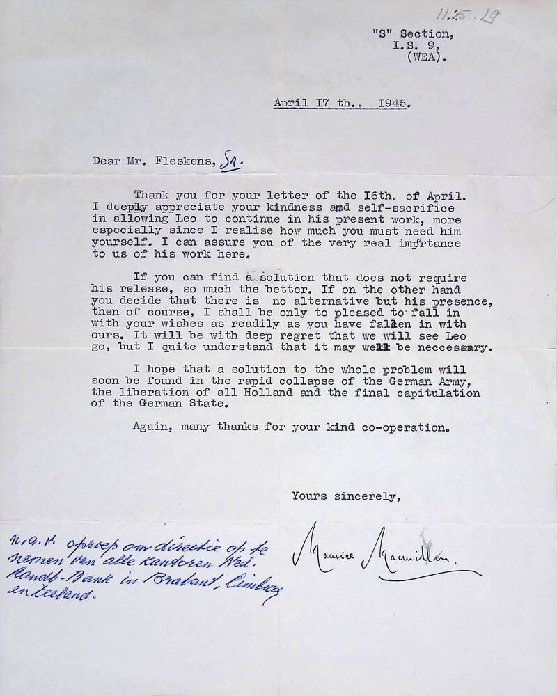 I.S.9; brief van Maurice Macmillan