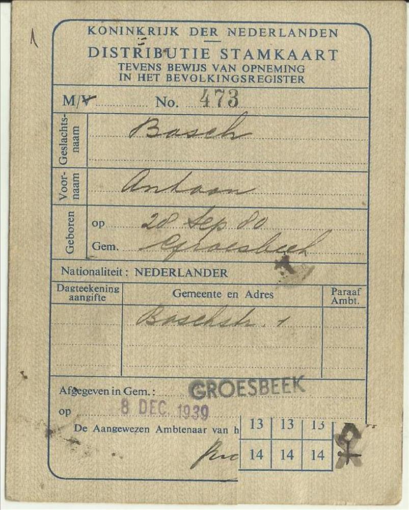 Distributiestamkaart ( tevens bewijs van opneming in...