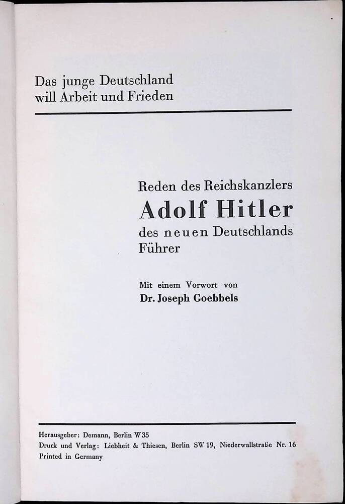 Brochure: Das junge Deutschland will Arbeit und Frie...