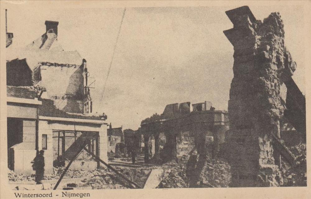 Foto (ansichtkaart) bombardement van Nijmegen 22 feb...