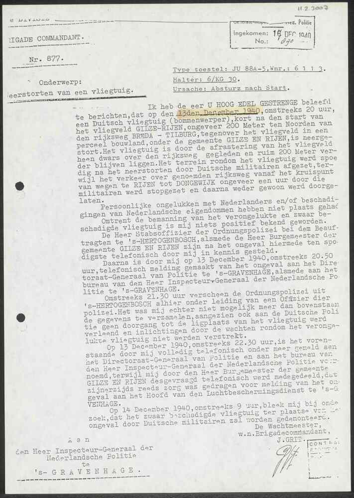 1. Melding d.d. 10-12-1940 van Rijksinspectie Luchtb...