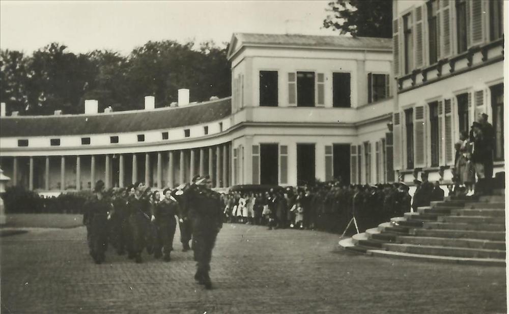 Ned. Indië na WO 2; Soestdijk, parade, bordes Konink...