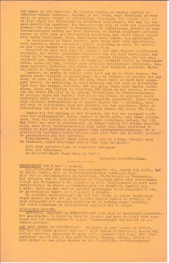 Rood Wit Blauw bevrijdingsnummer, zaterdagmorgen 5 m...