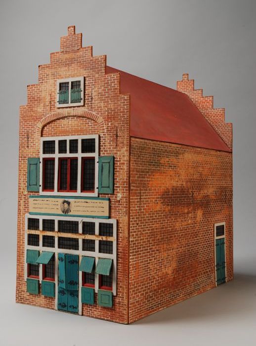 Model van huis Erasmus, met trapgevel en groene luik...