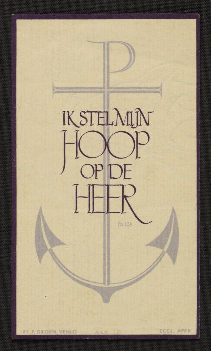 Bidprent voor Jacoba Maria Walop (Rotterdam 1870 - N...