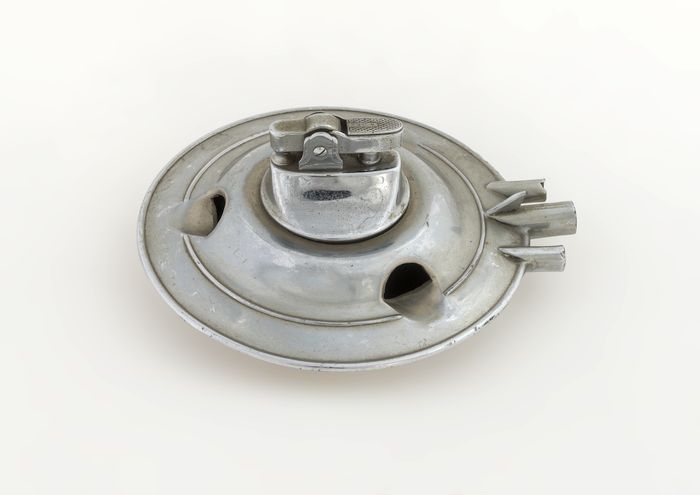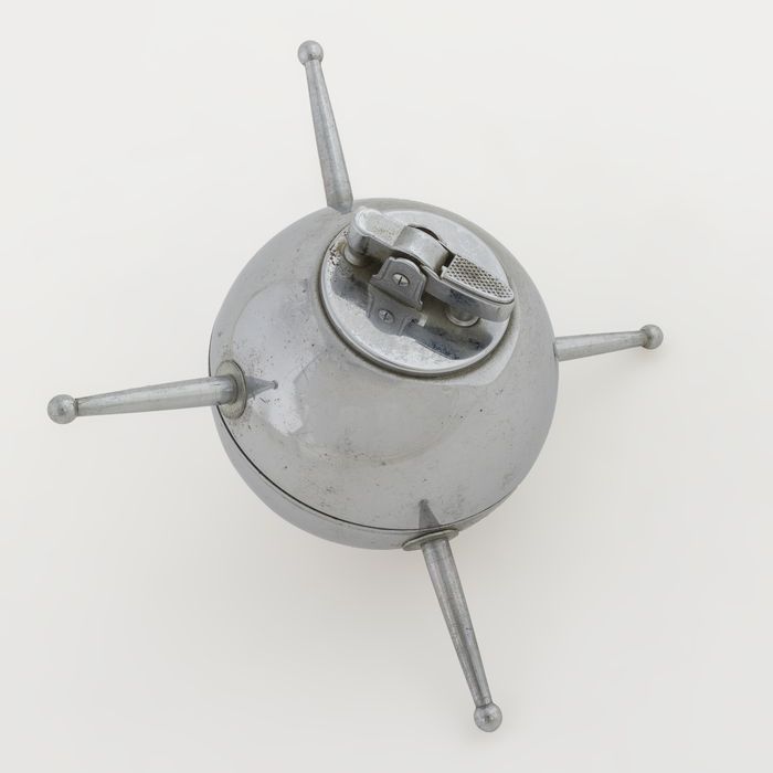 Blank metalen benzineaansteker in de vorm van een ku...