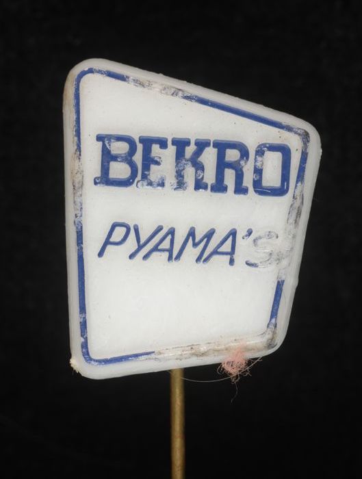 Witte reclamespeld, met in zwart "Bekro pyama´s"