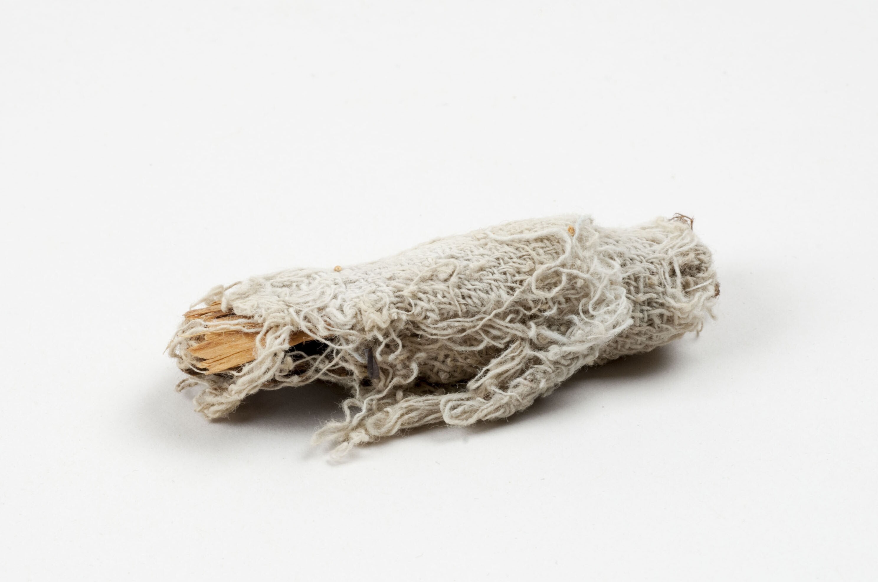 Drie stuks houtspaanders, gewikkeld in een stukje ka...