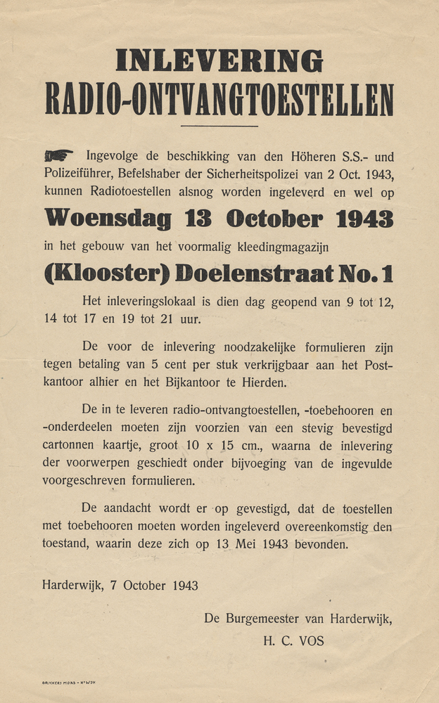 Affiche 'Inlevering radio-ontvangtoestellen'