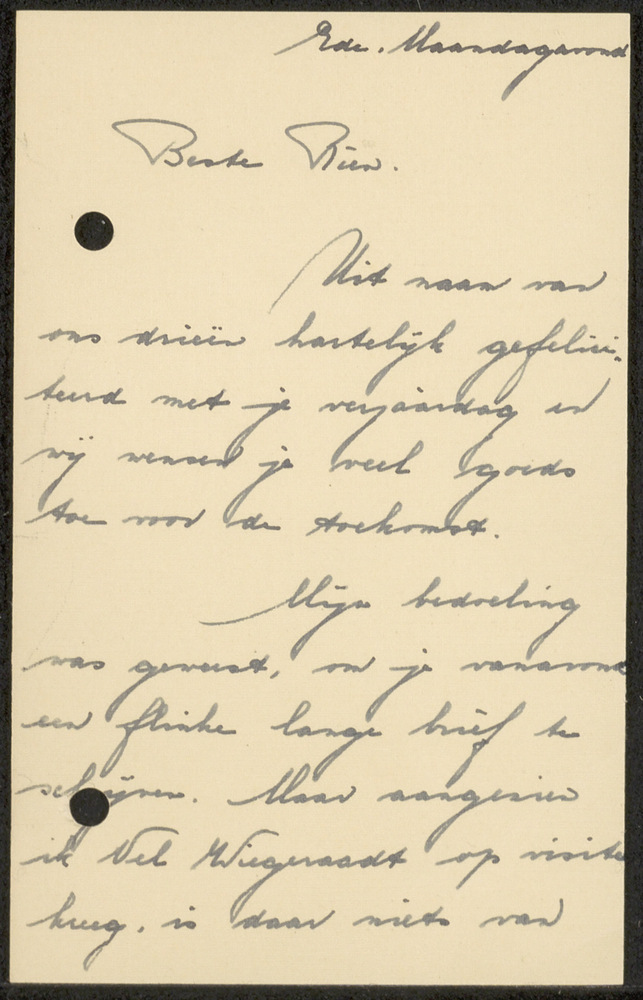 Aan mejuffrouw M.P. van der Heyden van de minister v...