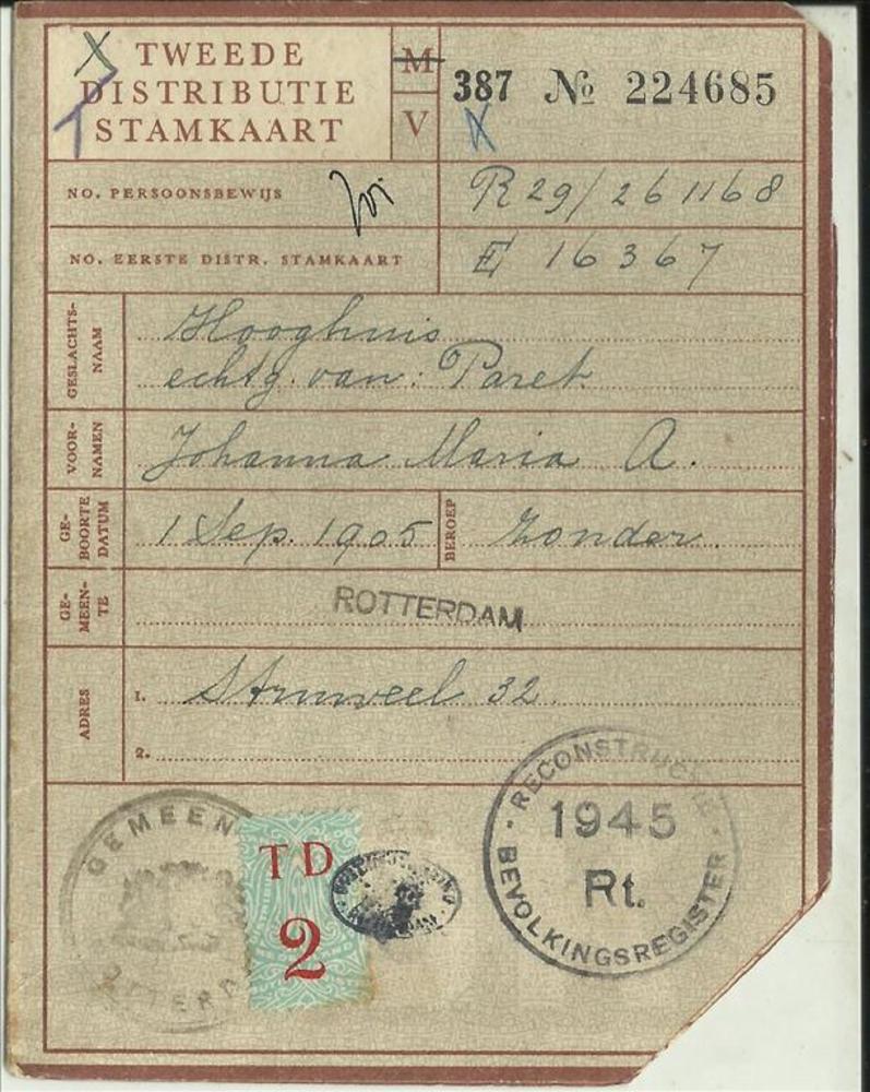 Tweede Distributiestamkaart van : Hooghuis, Johanna ...