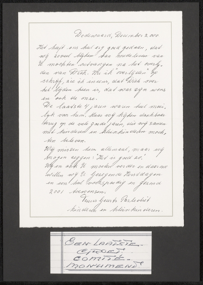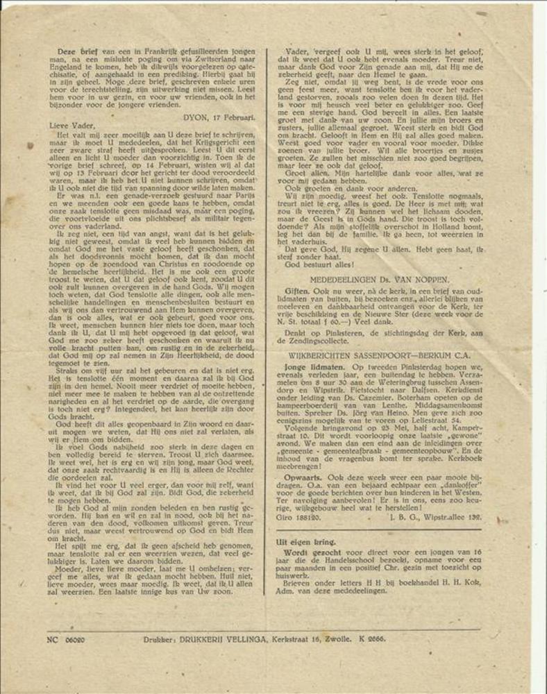 Dankbetuiging . Het overlijden van een Stoottroeper.